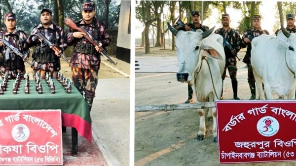 চাঁপাইনবাবগঞ্জ ব্যাটালিয়ন (৫৩ বিজিবি) কর্তৃক পৃথক পৃথক অভিযানে মদ ও গরু জব্দ