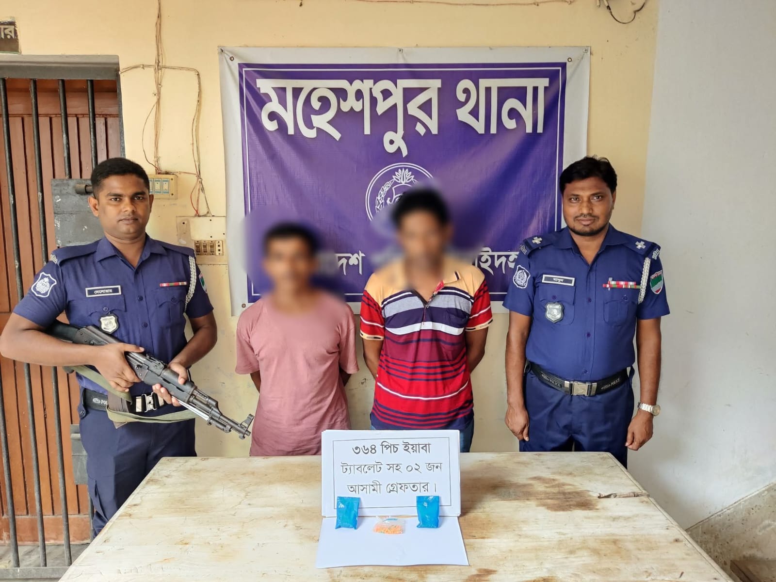 মহেশপুর থানার এসআই (নিঃ) টিপু সুলতান সংগীয় ফোর্স ও ১০ ইবি ভৈরবা আর্মি ক্যাম্পের সদস্যদের নিয়ে গতকাল রাত ১২টা ১৫ মিনিট থেকে রাত ২টা ১০ মিনিট পর্যন্ত এ অভিযান পরিচালনা করেন। এ সময় উপজেলার যোগীহুদা মাঝপাড়া গ্রামের মৃত সিরাজ মিয়ার ছেলে মোঃ কাজল মিয়া (৩৯) ও মৃত আঃ হামিদ মিয়ার ছেলে মোঃ তোতা মিয়া (৪৫) কে গ্রেফতার করা হয়। তবে একই গ্রামের মৃত মজনু মিয়ার ছেলে মোঃ মালেক মিয়া (৪৫) ঘটনাস্থল থেকে পালিয়ে যায়।