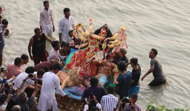 শুক্রবার বিকালে মন্ডপ গুলো থেকে প্রতিমা বিসর্জনের মধ্যে দিয়ে দুর্গাপূজা সম্পন্ন হয়েছে।