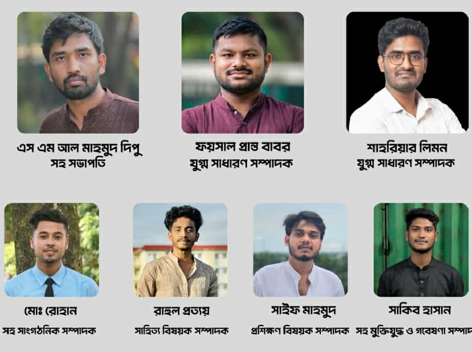 এই কমিটিতে কালীগঞ্জ উপজেলার চার তরুন নেতা শাহরিয়ার লিমন (যুগ্ম সাধারণ সম্পাদক), মোঃ রোহান ( সহ সাংগঠনিক সম্পাদক), রাহুল প্রত্যয় (সাহিত্য ও প্রকাশনা সম্পাদক) ও সাইফ মাহমুদ (প্রশিক্ষণ বিষয়ক সম্পাদক) পদে দায়িত্ব পেয়েছেন।