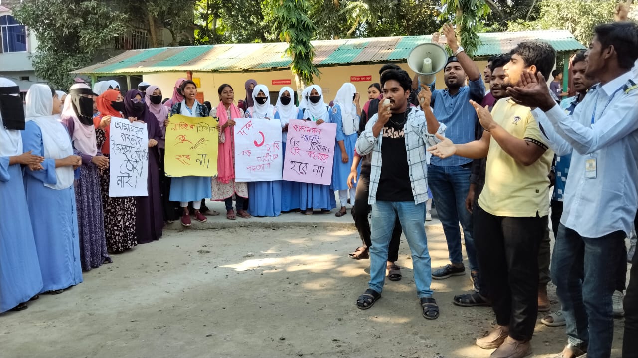 (১৮ নভেম্বর) মঙ্গলবার সকাল থেকেই শিক্ষার্থীরা কলেজ চত্বরে অবস্থান নিয়ে মানববন্ধন ও প্রতিবাদ সমাবেশে নানা ধরনের স্লোগান দিতে থাকে কয়েক শত শিক্ষার্থী।