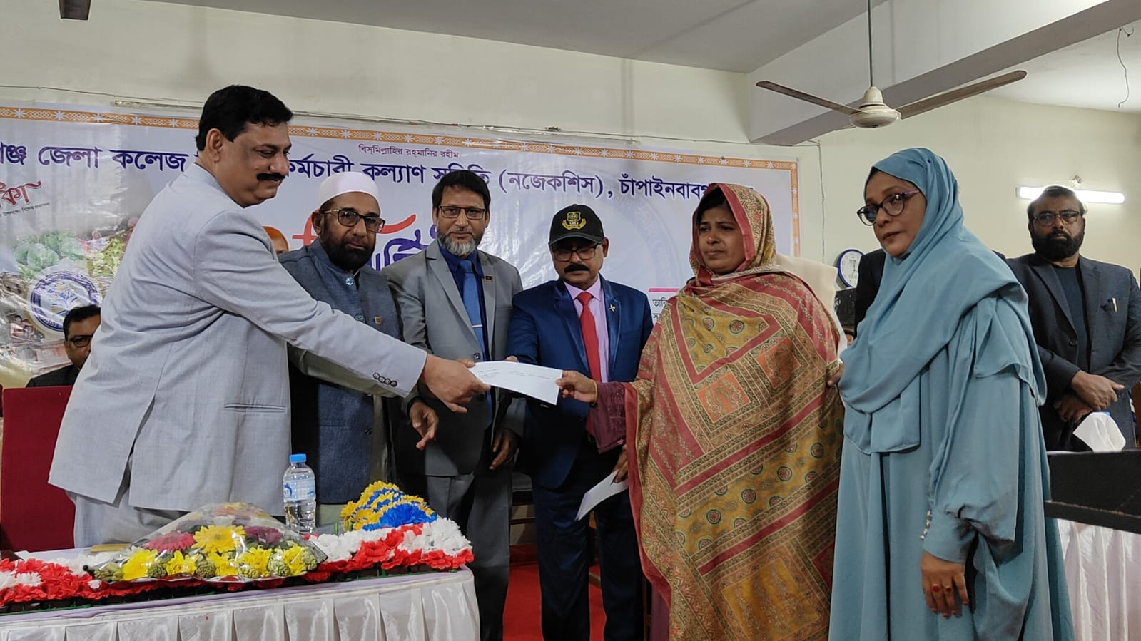 আজ (৬ ডিসেম্বর) শনিবার সকাল সাড়ে দশ ঘটিকায় চাঁপাইনবাবগঞ্জে শাহ্ নেয়ামতুল্লাহ কলেজের হলরুমে নবাবগঞ্জ জেলা কলেজ শিক্ষক - কর্মচারী কল্যান সমিতি(নজেকশিস) চাঁপাইনবাবগঞ্জের ত্রি-বার্ষিক সাধারণ সভা অনুষ্ঠিত হয়। চাঁপাইনবাবগঞ্জ জেলা কলেজ শিক্ষক-কর্মচারী কল্যান সমিতি (নজেকশিস) এর ৩৫ জন সদস্য নিয়ে নবনির্বাচিত কার্যনির্বাহী কমিটি তালিকা উন্মোচন করেন। নবাবগঞ্জ জেলা কলেজ শিক্ষক - কর্মচারী কল্যান সমিতি (নজেকশিস)ত্রি-বার্ষিক সাধারণ সভায় নবনির্বাচিত সভাপতি হলেন শাহ্ নেয়ামতুল্লাহ কলেজের অধ্যক্ষ মোহাঃ তরিকুল আলম সিদ্দিকী ও সাধারণ সম্পাদক হলেন বীরশ্রেষ্ঠ শহীদ ক্যাপটেন মহিউদ্দিন জাহাঙ্গীর কলেজের অধ্যক্ষ মোঃ বাবুল আকতার । উক্ত অনুষ্ঠানে স্বাগত বক্তব্য দেন নজেকশিস এর সদস্য ও নাচোল মহিলা কলেজের অধ্যক্ষ মোঃ ওবাইদুর রহমান। বিশেষ অতিথি হিসেবে যারা বক্তব্য দেন, চাঁপাইনবাবগঞ্জ-৩ আসনের সাবেক এমপি ও প্রাঙ্গন অধ্যক্ষ (ভারপ্রাপ্ত) নবাবগঞ্জ সিটি কলেজ এবং শাহ্ নেয়ামতুল্লাহ কলেজর গভনিং বডির সভাপতি মোহাঃ লতিফুর রহমান, চেম্বার অব কমার্স এন্ড ইন্ডাস্ট্রি সভাপতি আব্দুল ওয়াহেদ, সাবেক উপজেলা চেয়ারম্যান ও নজেকশিস এর সদস্য মোঃ মোখলেশুর রহমান, নজেকশিস এর সদস্য মোঃ আনোয়ার হোসেন । উক্ত অনুষ্ঠানে মোট ৭ টি চেক প্রদান করা হয়েছে এর মধ্যে ২ জন প্রয়াত সদস্য এর নমিমীকে অনুদান চেক প্রদান এবং প্রয়াত ৫ জন সদস্যর নমিনীকে জমাকৃত টাকার লভ্যাংশসহ প্রদত্ত টাকার চেক প্রদান করেন। এছাড়াও আরোও বক্তব্য রাখেন, নজেকশিস এর সাবেক সভাপতি মোঃ মোশারফ হোসেন, নজেকশিস এর সাবেক সভাপতি মোঃ সাইদুর রহমান ও নজেকশিস এর সাবেক সাধারণ সম্পাদক মোঃ আতাউর রহমান প্রমুখ। যারা প্রয়াত হয়েছে তাদের জন্য দোয়া পরিচালনা করেন শাহ্ নেয়ামতুল্লাহ কলেজের প্রভাষক মুহাম্মদ ফারহাত হোসাইন।