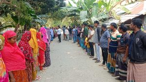 শৈলকুপায় অতর্কিত হামলার প্রতিবাদ ও হামলাকারীদের শাস্তির দাবীতে মাননবন্ধন