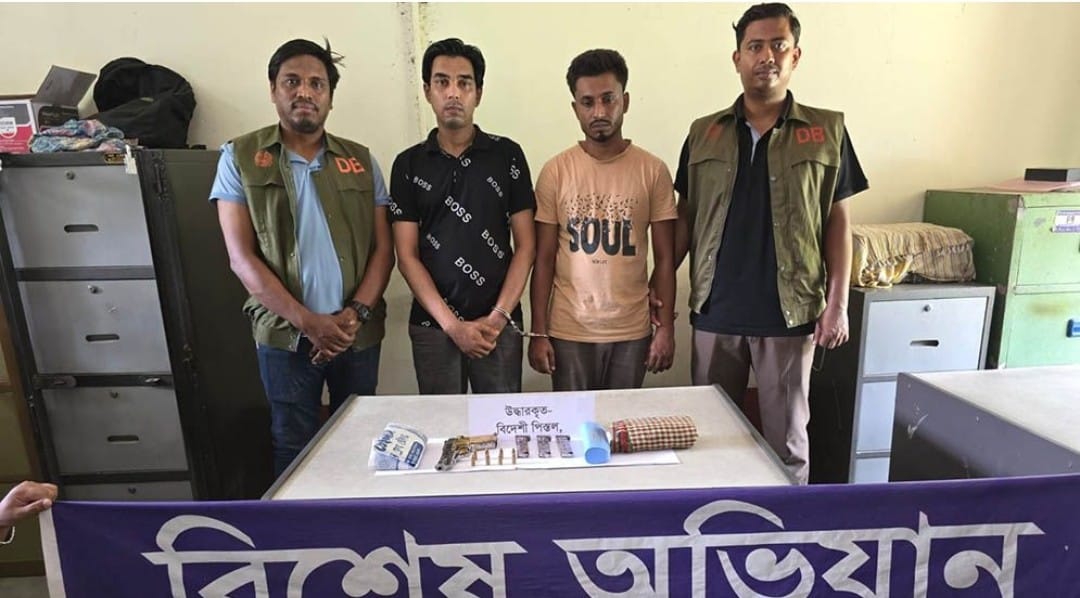 জেলা ডিবির ওসি মো. শামসুল আলম শাহ জানান, পুলিশ সুপার মো. আনিসুজ্জামানের নির্দেশনা অনুযায়ী গোপন সংবাদের ভিত্তিতে জেলার আদর্শ সদর উপজেলার ঘোড়ামারা এলাকায় অভিযান পরিচালনা করা হয়। এ সময় আশরাফুল ইসলাম আকাশ ও শরিফুল ইসলাম ভূঁইয়া ওরফে সানি নামে দুই সন্ত্রাসীকে আটক করে জিজ্ঞাসাবাদ করা হয়। পরে তাদের স্বীকারোক্তি ও দেখানোমতে ঘোড়ামারা এলাকার একটি চারতলা ভবনের মোবাইল টাওয়ারে অভিনব কৌশলে লুকানো অবস্থায় একটি ব্যাগ থেকে একটি বিদেশি পিস্তল, ৩টি ম্যাগাজিন ও ৮ রাউন্ড গুলি উদ্ধার করা হয়।