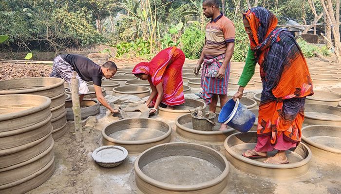 পলাশ পাল ও তার স্ত্রী কনিকা পাল দু'জনে বাড়ির ওঠানে মাটির চাকি তৈরি ও শুকানোর জন্য ব্যস্ত। পাশে জ্বলছে উত্তপ্ত চুলা। ভাটায় স্তরে স্তরে সাজানো মাটির চাকি। মাটির তৈরি চাকিগুলো পুৃড়ে লালচে আকার ধারন হওয়া পর্যন্ত জ্বলবে আগুন। তাদের শরীরের ঘাম টপ টপ মাটিতে লুটিয়ে পড়ছে। এ সংসারে কনিকা পালের কেটেছে দীর্ঘ ১৬ টি বছর। নববধু হয়ে আসার পর থেকেই স্বামীর কাজে সহযোগিতা করে আসছেন তিনি।এ বিষয়ে পলাশ পাল জানান, আগে খুব সহজে মাটি পাওয়া যেত দামও কম ছিল। বর্তমানে মাটি সহজে পাওয়া যায় না, খরচ ও বেশি হয়। জ্বালানির দাম ও বেশি পড়ে। কাদা চাকি তৈরির উপযোগী করে তুলতে মেশিনের ব্যবহার করা হয়৷ কাজ সহজ হলেও এর জন্য আলাদা খরচ পড়ে। এছাড়া বর্তমানে স'মিল থেকে কাঠের গুড়া কিনে আনছি। মেশিনের সাহায্যে জ্বালের ব্যবস্থা করেছে। যার ফলে ধোঁয়া কম হচ্ছে। একটি চাকি তৈরিতে যে খরচ হয় তাতে তেমন একটা লাভ থাকে না। স্বামী-স্ত্রী দু'জনে মিলে কাজ করি, যা হয় তাতে নিজেদের পারিশ্রমিক থাকে। বেশি একটা লাভ হয় না।