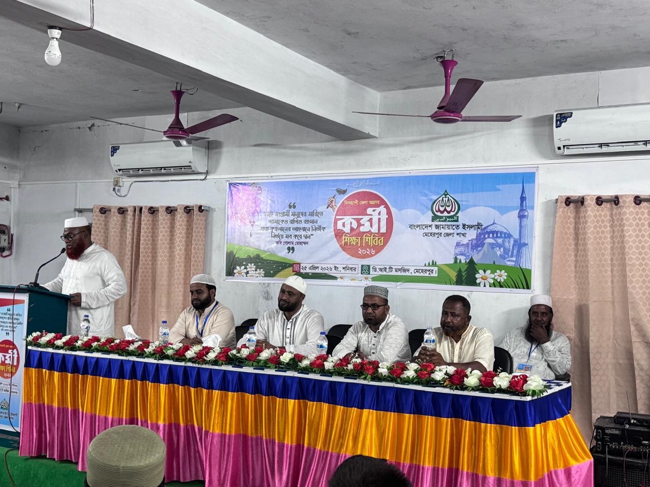 মেহেরপুর জেলা জামায়াতের উদ্যোগে দিনব্যাপী অগ্রসর কর্মী শিক্ষা শিবির অনুষ্ঠিত হয়েছে। অনুষ্ঠানের সভাপতিত্ব করেন মেহেরপুর- ১ আসনের সংসদ সদস্য ও জেলা জামায়াতের আমীর মাওলানা তাজ উদ্দিন খান। প্রধান অতিথি হিসেবে উপস্থিত ছিলেন ড: আবু সাদিক কেন্দ্রীয় কর্ম পরিষদের সদস্য,প্রধান বক্তা হিসাবে উপস্থিত ছিলেন ড. আলমগীর বিশ্বাস, বিশেষ অতিথি হিসেবে উপস্থিত ছিলেন মোঃ আব্দুল মতিন টিম সদস্য যশোর কুষ্টিয়া অঞ্চল, অধ্যক্ষ খন্দকার এ কে এম আলী মহসিন কুষ্টিয়া জেলা আমীর, মেহেরপুর জেলা সেক্রেটার মোঃ ইকবাল হুসাইন, জেলা নায়েবে আমীর মাওলানা মাহবুব উল আলম, সদর উপজেলা আমীর মাওলানা সোহেল রানা, মুজিবনগর উপজেলা আমীর মাওলানা খান জাহান আলী, মেহেরপুর পৌর আমীর সোহেল রানা ডলার সদর উপজেলা সেক্রেটারি মাস্টার জাবারুল ইসলাম, মুজিবনগর উপজেলা সেক্রেটারি মোঃ খাইরুল বাসারসহ জামায়াতের অন্যান্য নেতাকর্মীরাও ছিলেন। প্রধান অতিথি বলেন আগামী বাংলাদেশের কোন সরকার যেন স্বৈরাচার না হতে পারে এবং প্রত্যেকটা মানুষ যেন স্বাধীনভাবে চলাফেরা করতে পারে এই ব্যাপারে বাংলাদেশ জামায়াতে ইসলামী তৃণমূল পর্যন্ত কাজ করে যাচ্ছে।