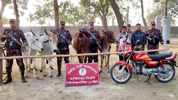 মাহিদুল ইসলাম ফরহাদ চাঁপাইনবাবগঞ্জ জেলা প্রতিনিধি চাঁপাইনবাবগঞ্জ ব্যাটেলিয়ান ৫৩ বিজিবি। গোপন তথ্যের ভিত্তিতে জানা যায় যে, চোরাচালানের উদ্দেশ্যে নদী পথে গবাদিপশু ও মাদকদ্রব্য এনে বিভিন্ন চরে লুকিয়ে রাখা হয়েছে।