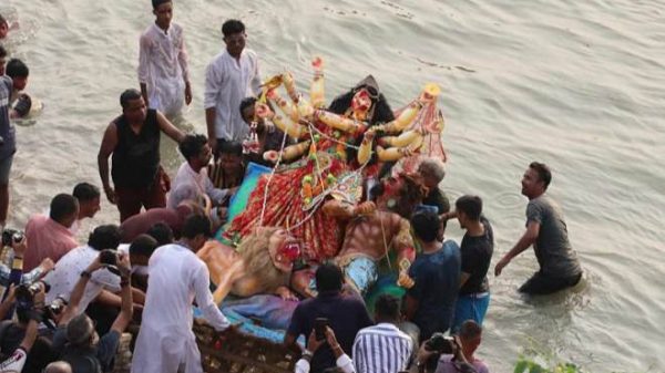 মোঃ সাকিব খান,মাগুরা জেলা প্রতিনিধি: মাগুরার শ্রীপুরে সনাতন ধর্মাবলম্বীদের সবচেয়ে বড় ধর্মীয় উৎসব শারদীয় দুর্গাপূজা প্রতিমা বিসর্জনের মধ্য দিয়ে উৎসব মূখর ও শান্তিপূর্ণ পরিবেশে সম্পন্ন হয়েছে। এবারের দুর্গাপূজাকে ঘিরে কোথাও